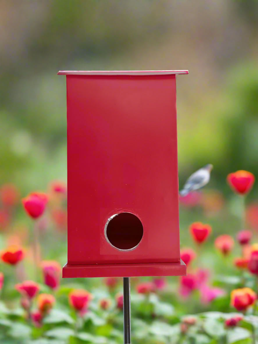 Handmade Red Telephone Box Bird Feeder nest – Garden Outdoor Decor with Robin Accent