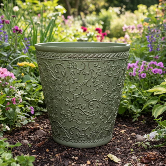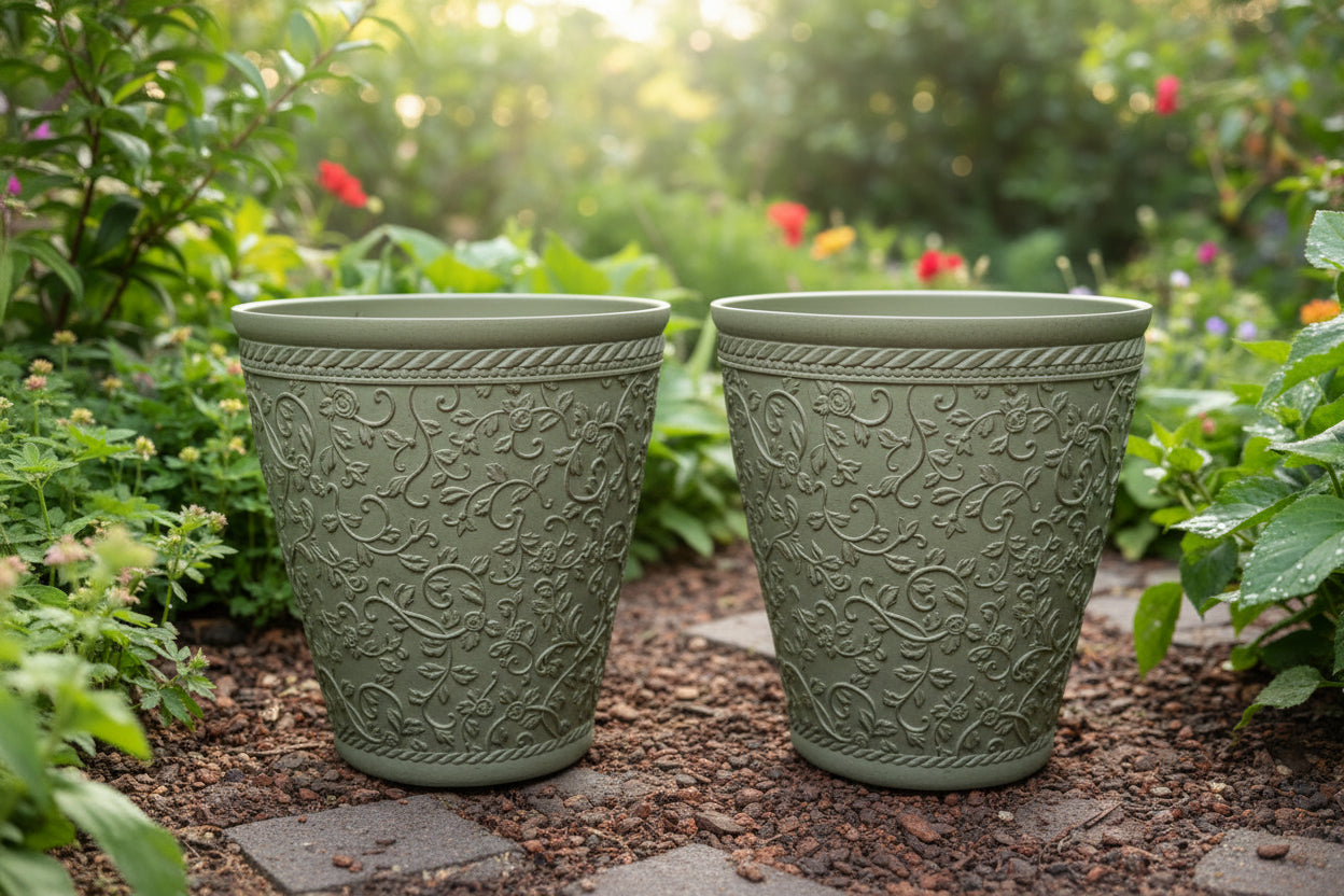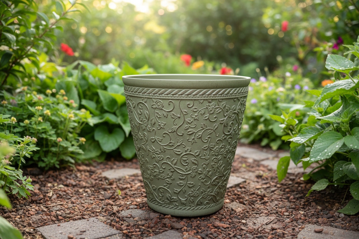 Elegant Embossed Polyresin Planter – Durable, Eco-Friendly, and Stylish