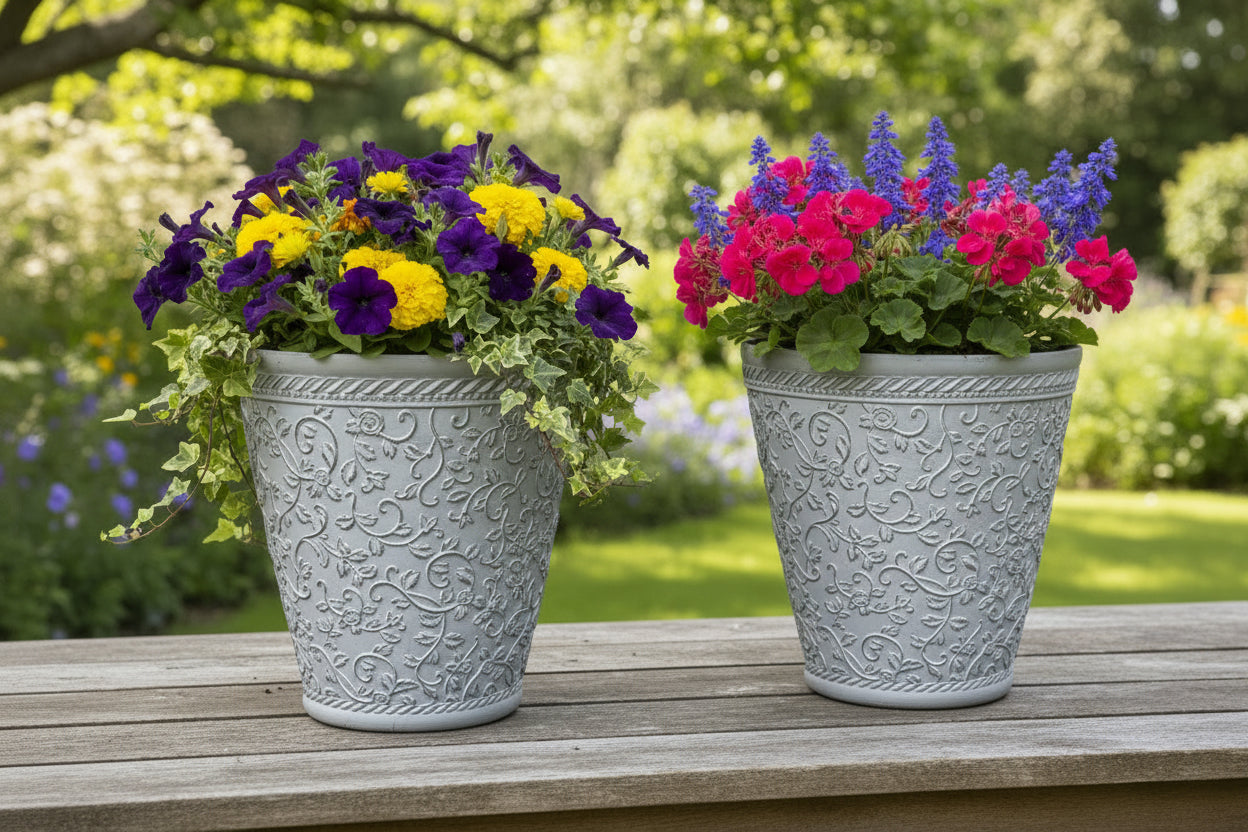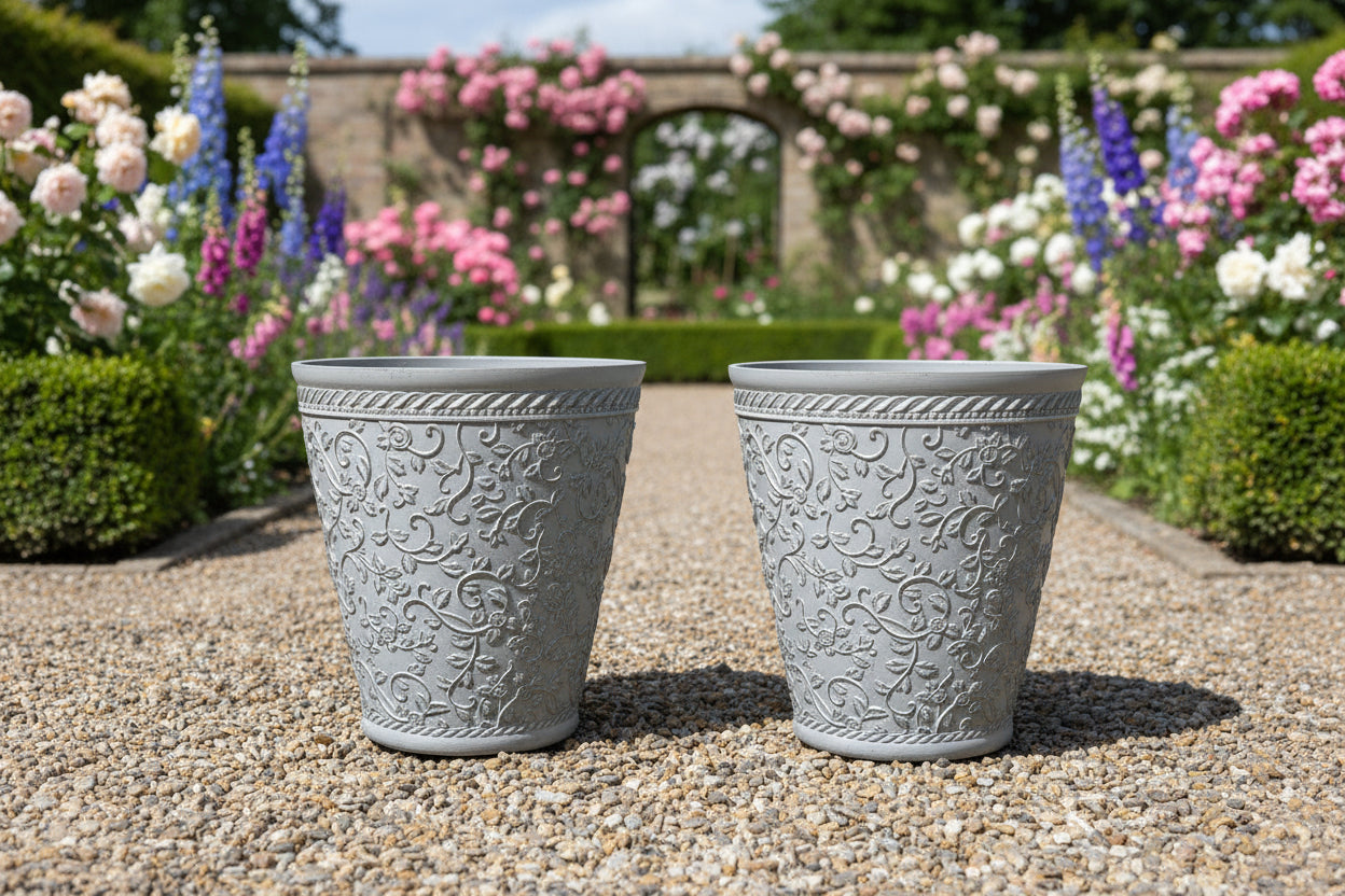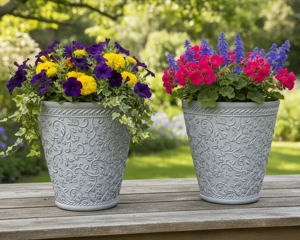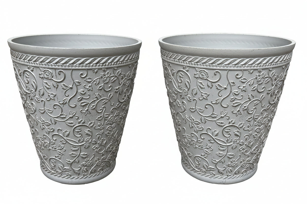 Elegant Embossed Polyresin Planter – Durable, Eco-Friendly, and Stylish two pots