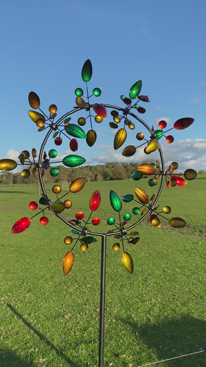 Denne smukke Marissa's Garden & Gift vindskulptur spinner, der er 2,4 meter høj, giver et ægte udsagnsstykke i din have med sine efterårs flerfarvede blade med skygge. Vindskulpturen har 10 sæt blade, hvor hvert sæt bevæger sig uafhængigt af brisen. Ikke alene er det en iøjnefaldende tilføjelse, da den forsigtigt vender ind i brisen for at give bevægelse til din have, men den er stærk og robust med sin pulverlakeret finish for at forhindre den i at forvitre og gør vindskulpturen modstandsdygtig over for ridser. Denne udsagnskunst udendørs vindskulptur inkluderer en stærk jordpæl, så den fastgøres sikkert i jorden, uanset om det blæser eller regner. Det er den perfekte tilføjelse til enhver have.