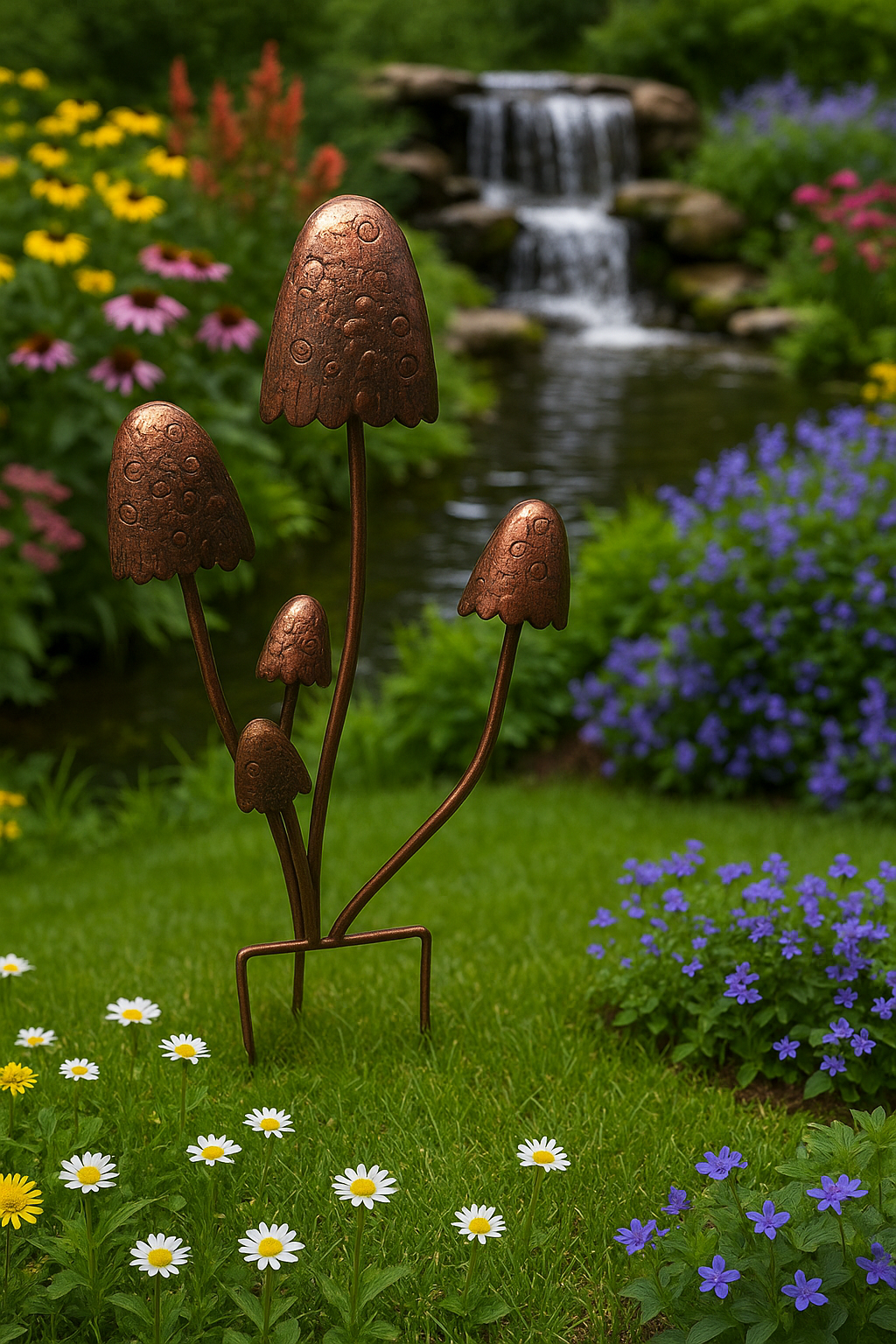 Perfect for placement among flowers, near a pond, or as a standout feature on your lawn, this mushroom stake adds an artistic and natural flair to any outdoor space.