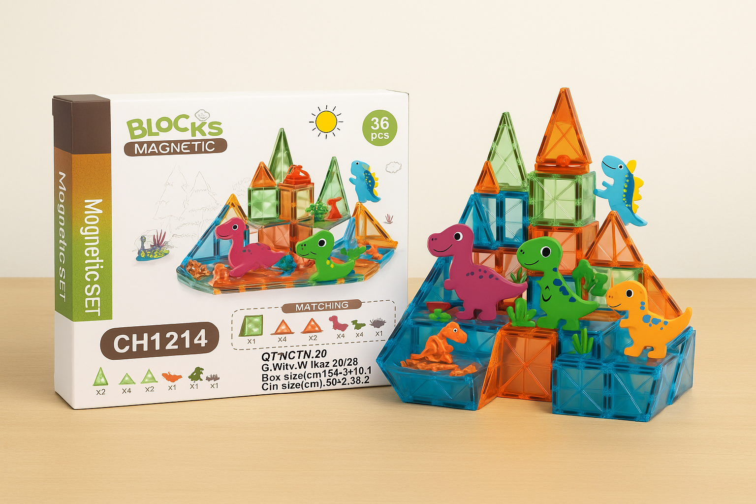 This fun and educational 36 piece magnetic building block set includes colourful tiles and cute dinosaur figures—perfect for kids to build, learn, and play. It encourages creativity, hand-eye coordination, and early STEM learning through hands-on building.