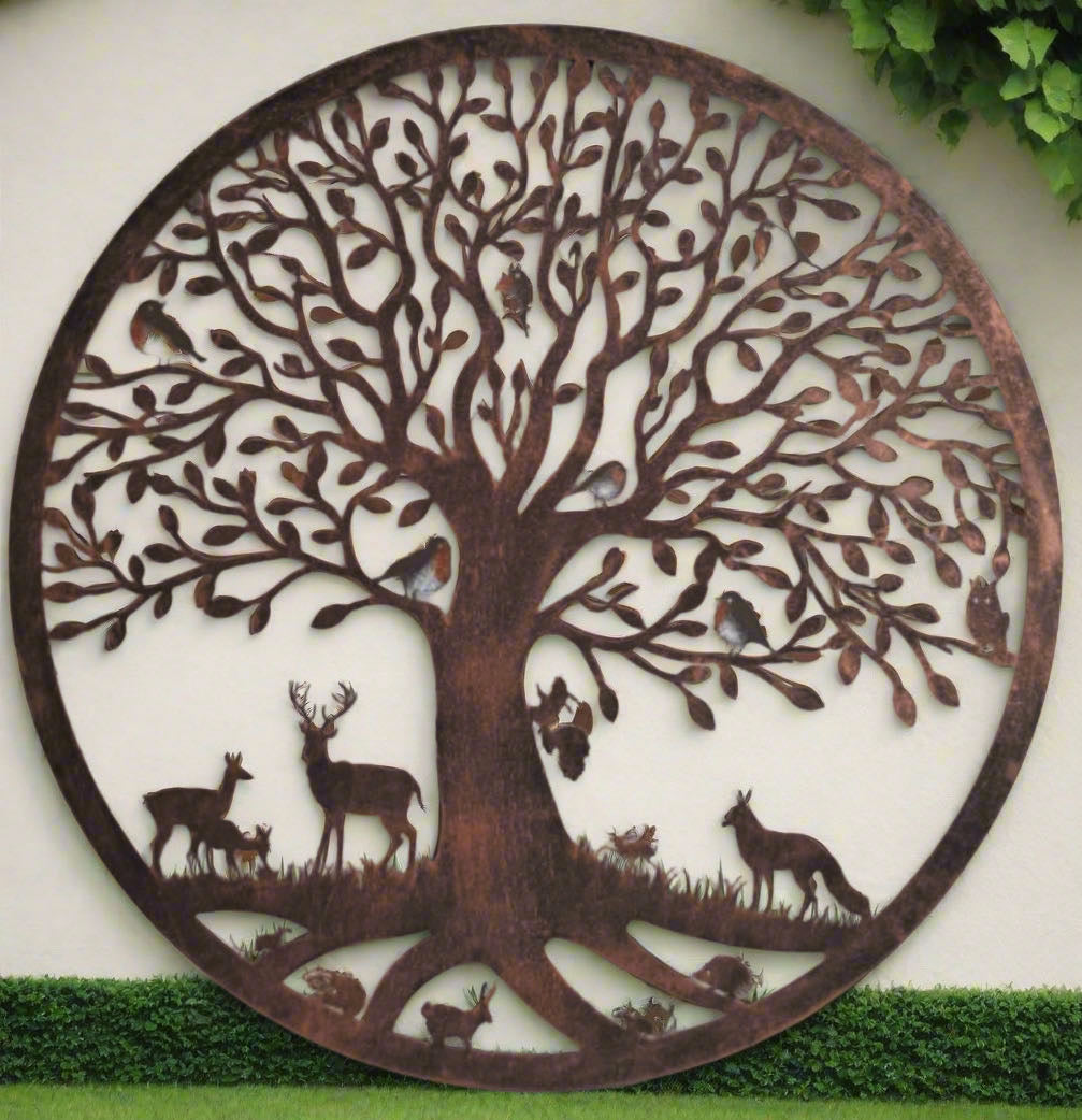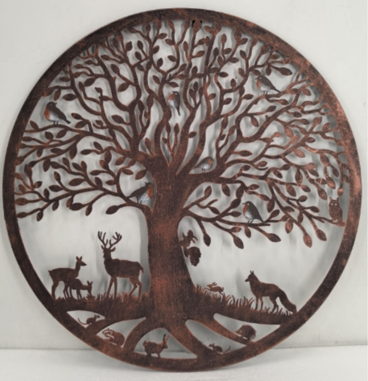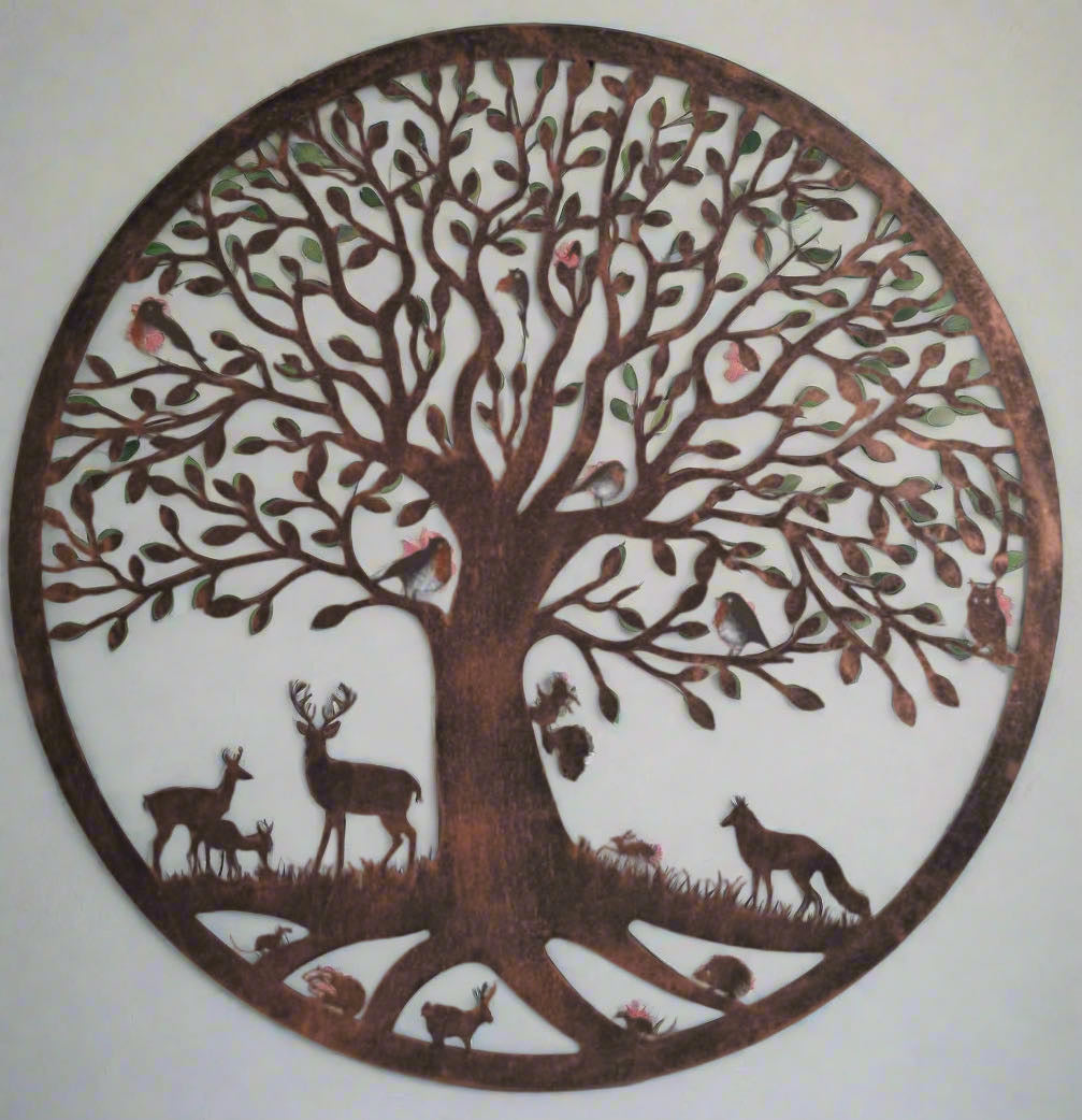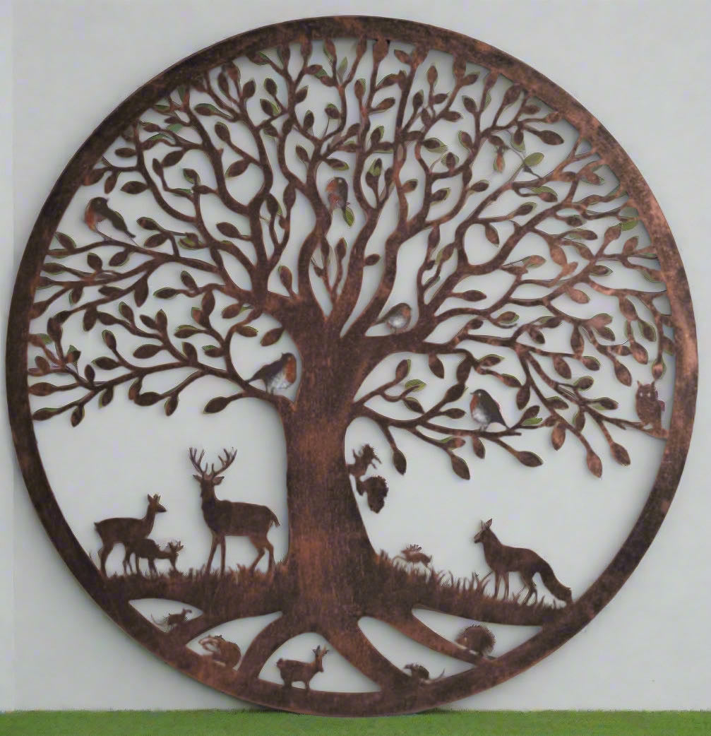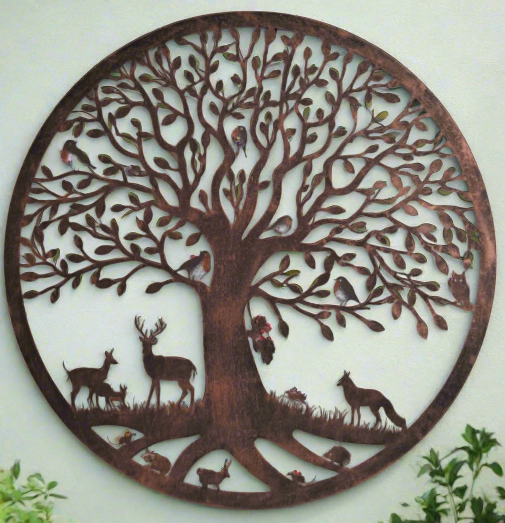Handmade bronze 60cm bronze wall plaque of Woodland animals Tree Wall Plaque, powder coated steel , indoor/outdoor Wall Art - Marissa's Garden & Gift