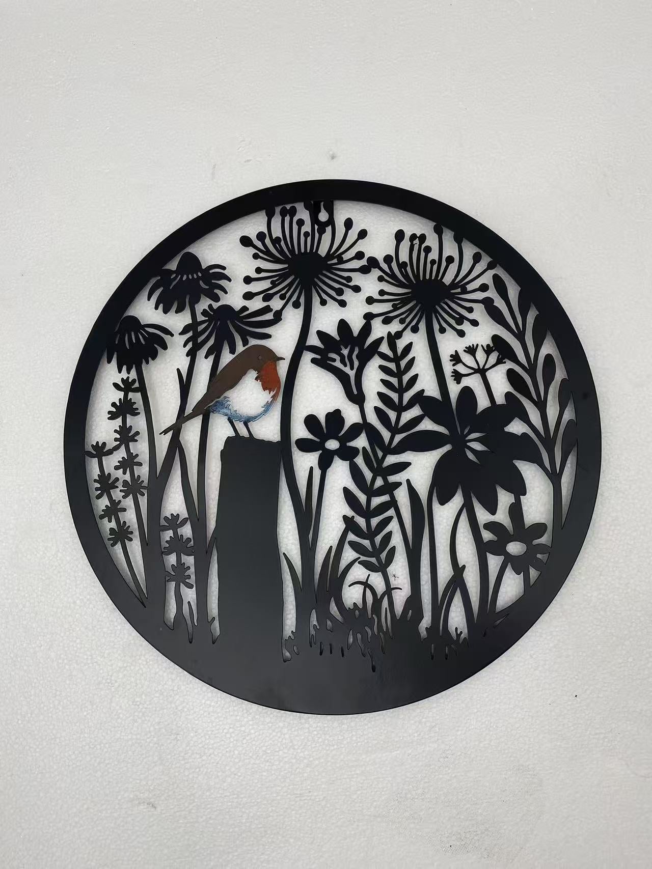 Handmade black 40cm wall plaque of Robin birds Tree Wall Plaque, black coloured Metal, Garden/indoor Wall Art powder coated steel