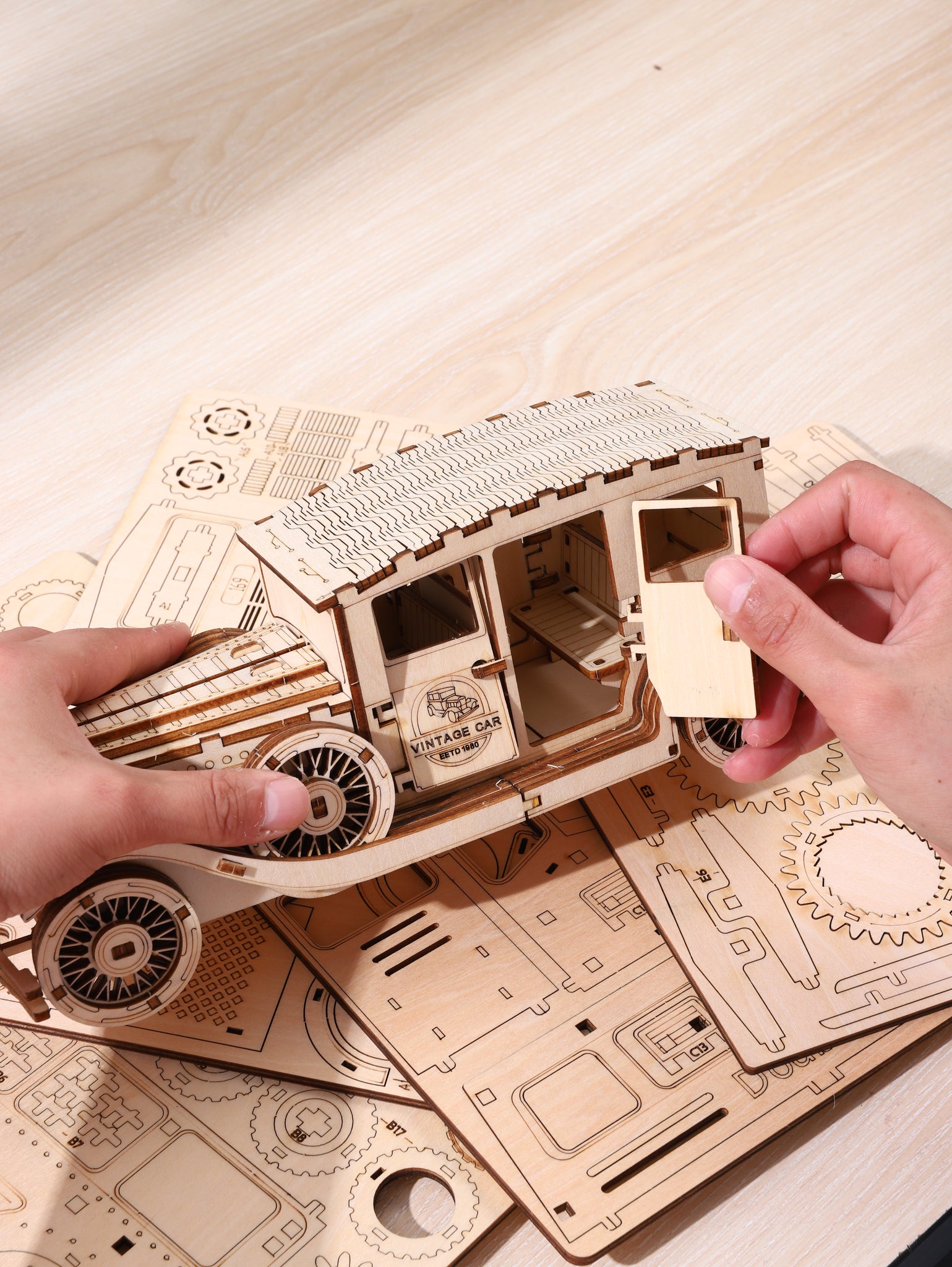 This kit comes unassembled, encouraging children to work alongside parents or grandparents, making it a fun and educational bonding experience. Assembling the classic car helps develop fine motor skills, spatial awareness, patience, and problem-solving - all while nurturing creativity and curiosity about design and mechanics.