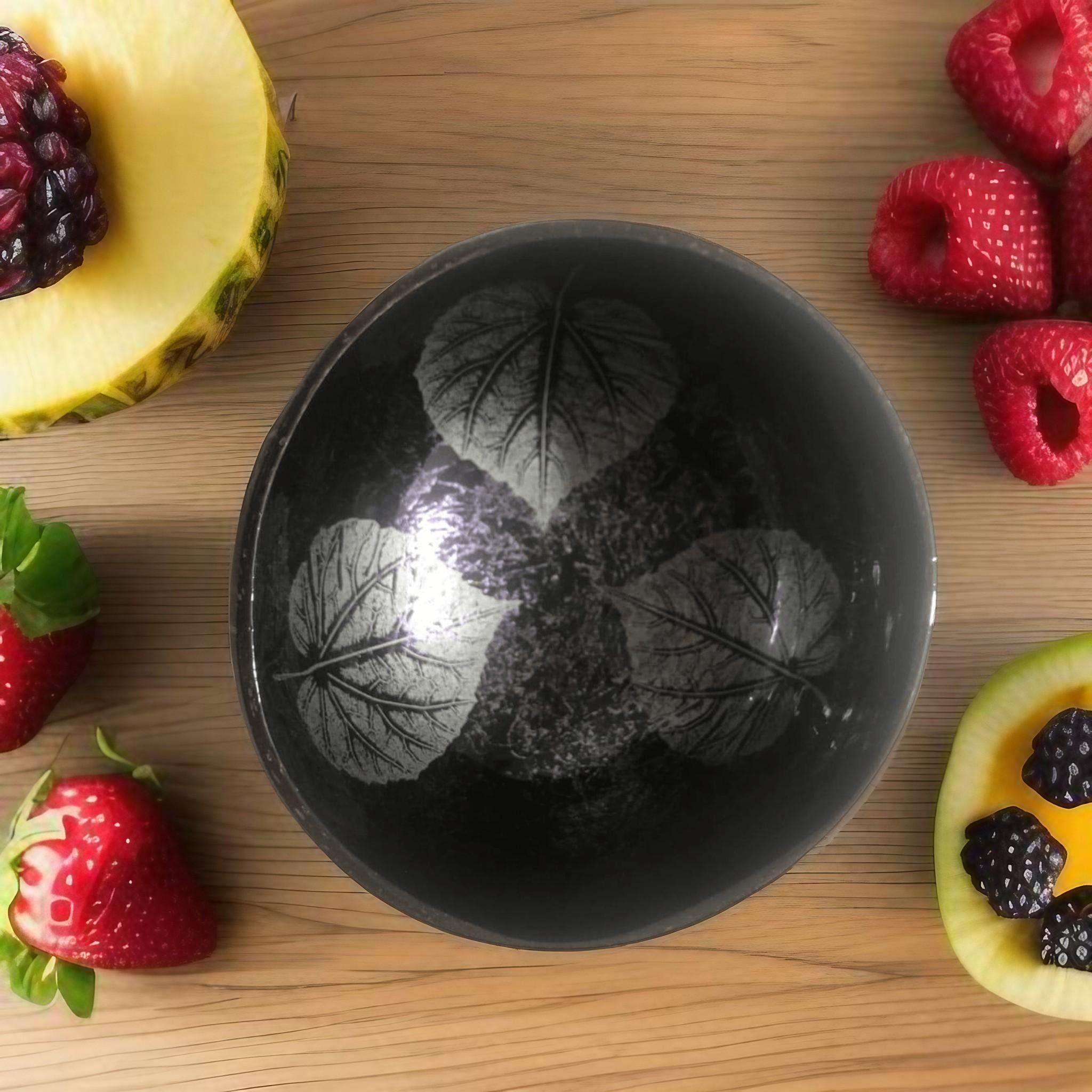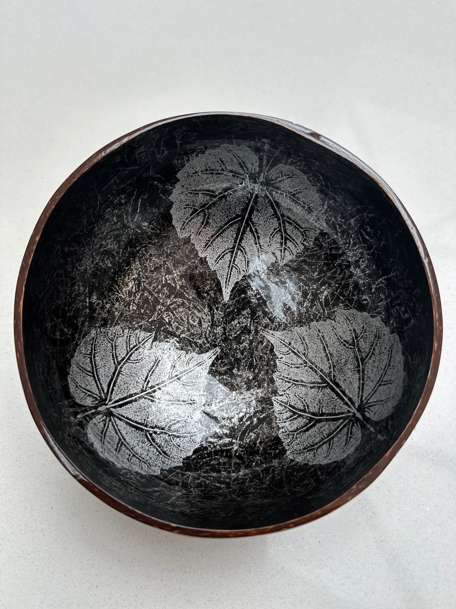 Handmade hand-painted grey leaf design food safe 5 coconut bowl